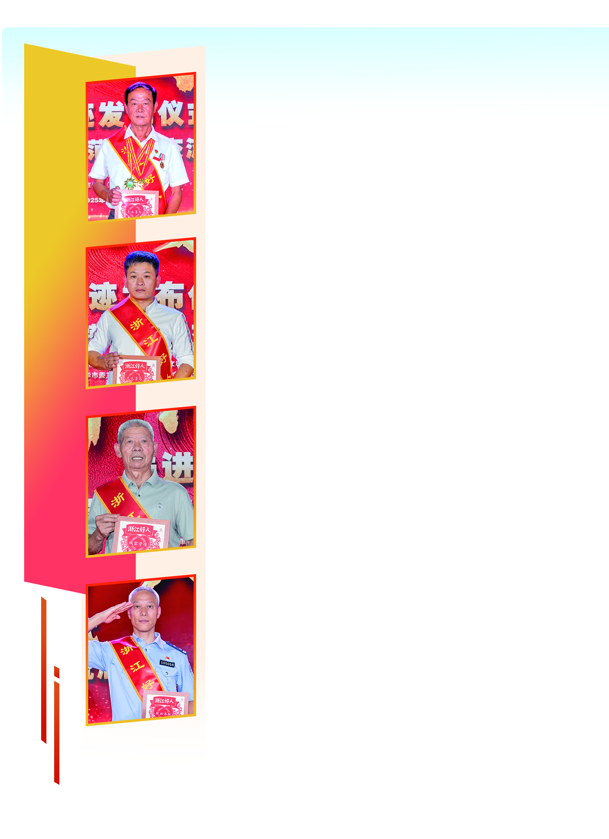他们中有浙江本地人,也有不少是新浙江人,都以凡人之躯行非凡之举,用朴实行动铸就了“浙”里最温暖的道德丰碑。他们从日常生活中缓步走来,肩头有着生活的细碎尘埃,心底却燃着永不熄灭的滚烫善念。