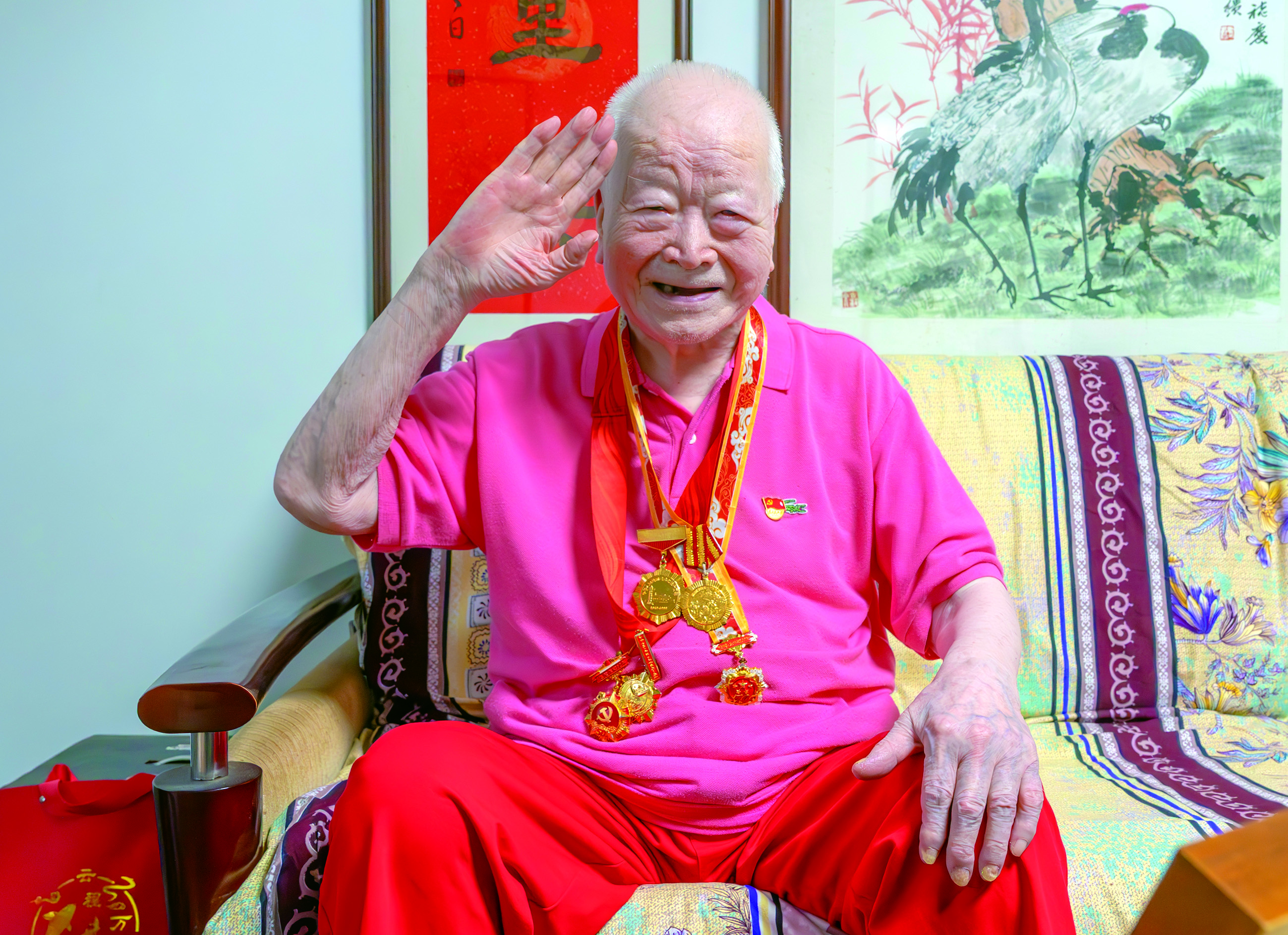 抗日战争胜利50周年、60周年、80周年……唯独少了一枚抗日战争胜利70周年的纪念章,不待记者发问,阎兴荣机智地说:“8岁的重孙拿去了。”