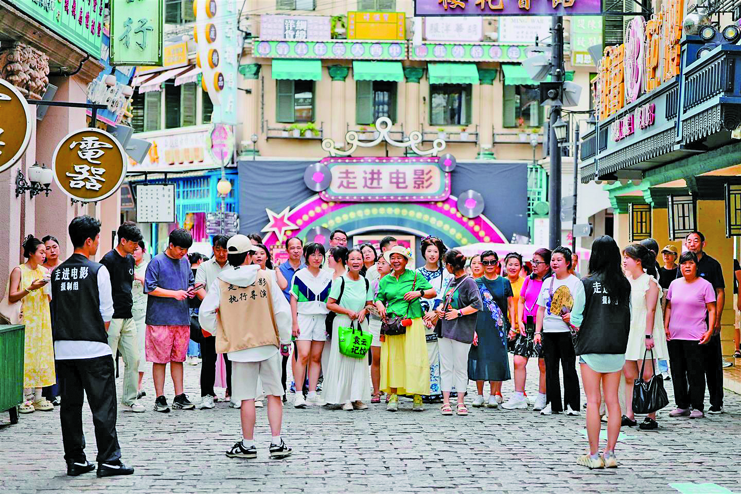暑期旅游旺季,横店影视城广州街·香港街景区凭借独特的民国港风场景与沉浸式体验,吸引了大批游客。 本报记者 俞佳妮 摄