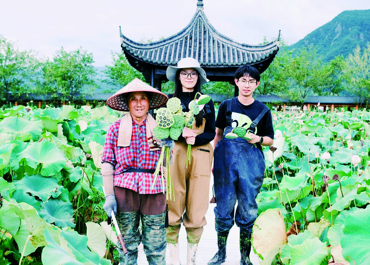 采摘下来的新鲜荷花、莲蓬,经过修剪、打包,将发往全国各地的市场。在荷花园深处的“共富工坊”里,我看到一派忙碌景象:工人们正熟练地剥离莲子、分拣莲蓬、取出莲心、打包鲜莲蓬和鲜切花。胡爱机介绍,这里有诀窍:“嫩莲蓬直接当鲜食莲子卖,又甜又脆,是我们的特色;老莲蓬则通过剥壳取出莲子,去壳去膜通芯烘干,做成干莲子。不少村民农闲时就来这里帮忙打包发货,贴补家用。还有些人自己种起了水果莲,一天能挣百来块。”