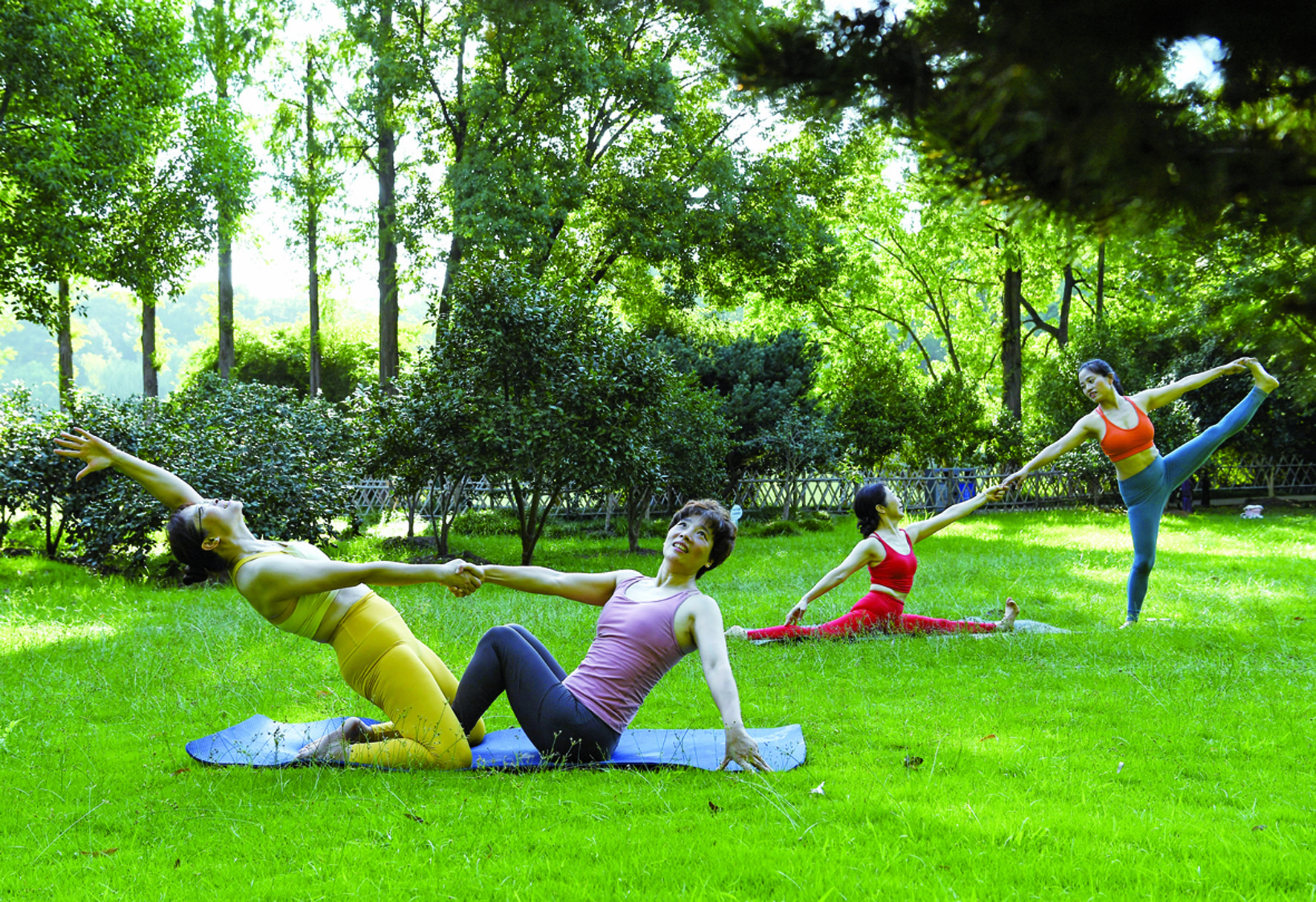 昨天,在市区中国茶花文化园里,瑜伽爱好者在集体练习瑜伽动作。爱好者的们把力量与柔美的融合在一起,展现了人与自然的和谐之美。 本报记者 时宽兵 摄