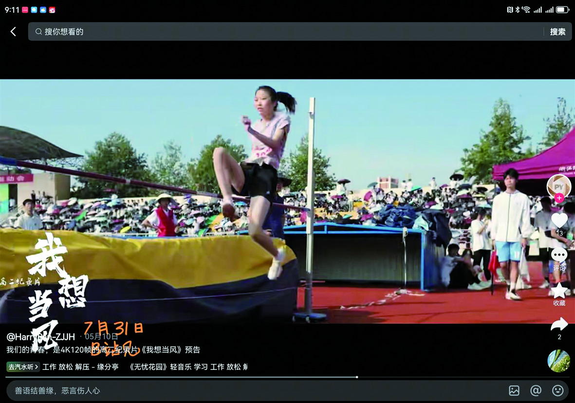 “平常而不平凡,真实鲜活而富有生命力,不夹杂任何技术的渲染和修饰,视频长却能让人完整看完,因为真实呈现附中学子生活与学习的点滴。”一名网友的留言,道出了浙江师范大学附属中学准高三生潘越执导的校园微纪录片《我想当风》走红的原因。