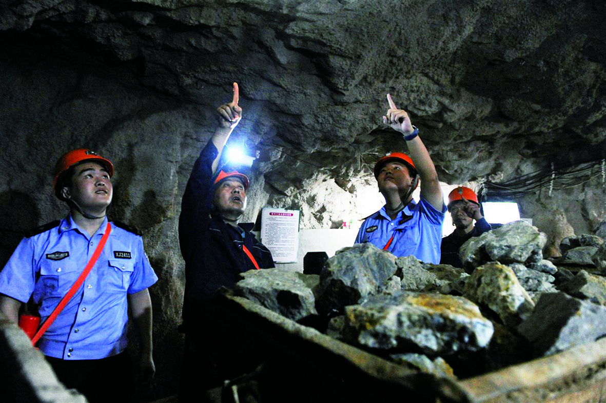 近日,东阳市公安局横店派出所民警来到辖区一矿点,深入70余米深的矿井开展安全生产巡检,要求下井矿工严格规范操作,时刻注重安全生产。图为民警在井下巡检。 蔡伟华 摄