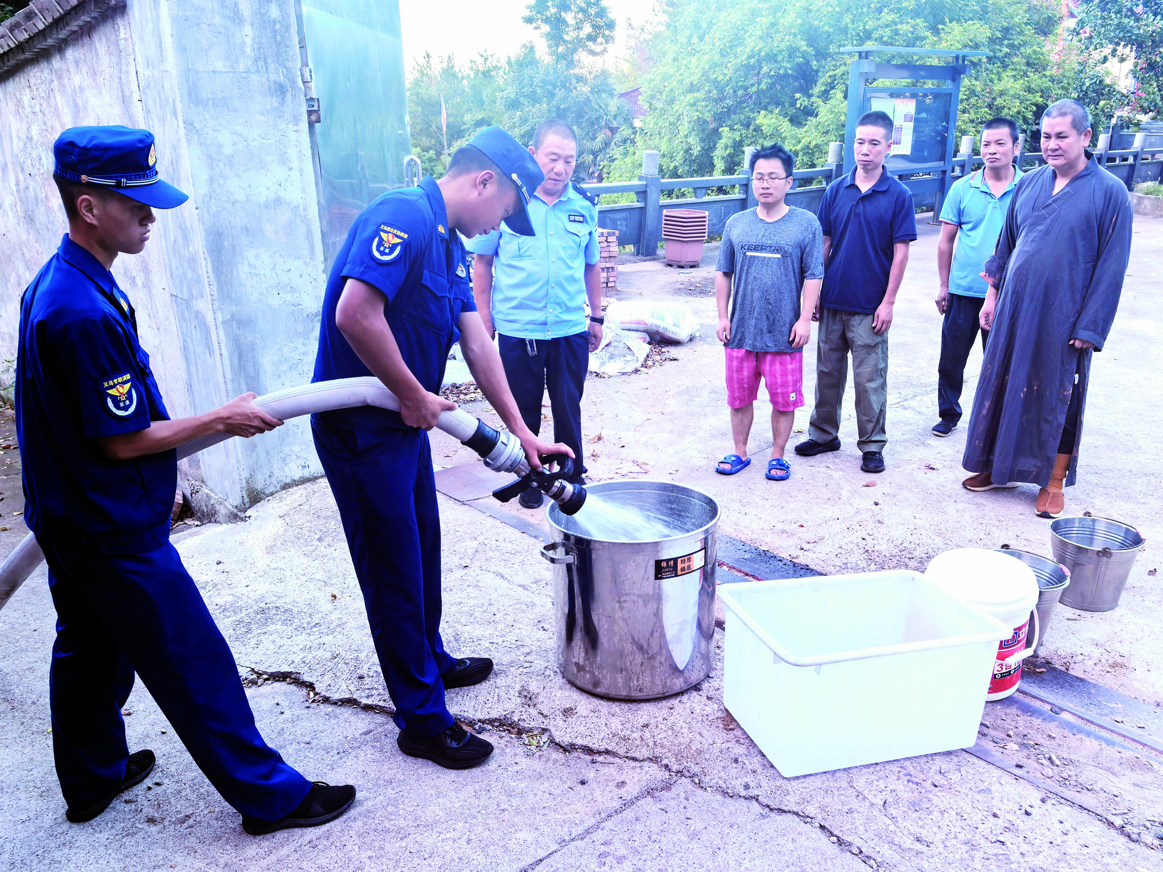 受持续高温少雨天气影响,义乌市金峰寺景区陷入用水困境。8月13~14日,义乌市苏溪镇专职消防队主动伸出援手,累计为该景区送去生活用水36吨,有效缓解了燃眉之急。