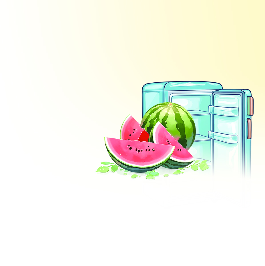 温馨提醒:尽量少吃冰冷的食物,尤其是冰镇西瓜这类刚从冰箱里拿出来的冰冷食物。这不仅容易在短时间内刺激消化道血管收缩,严重的还会引起腹痛、腹泻等症状。