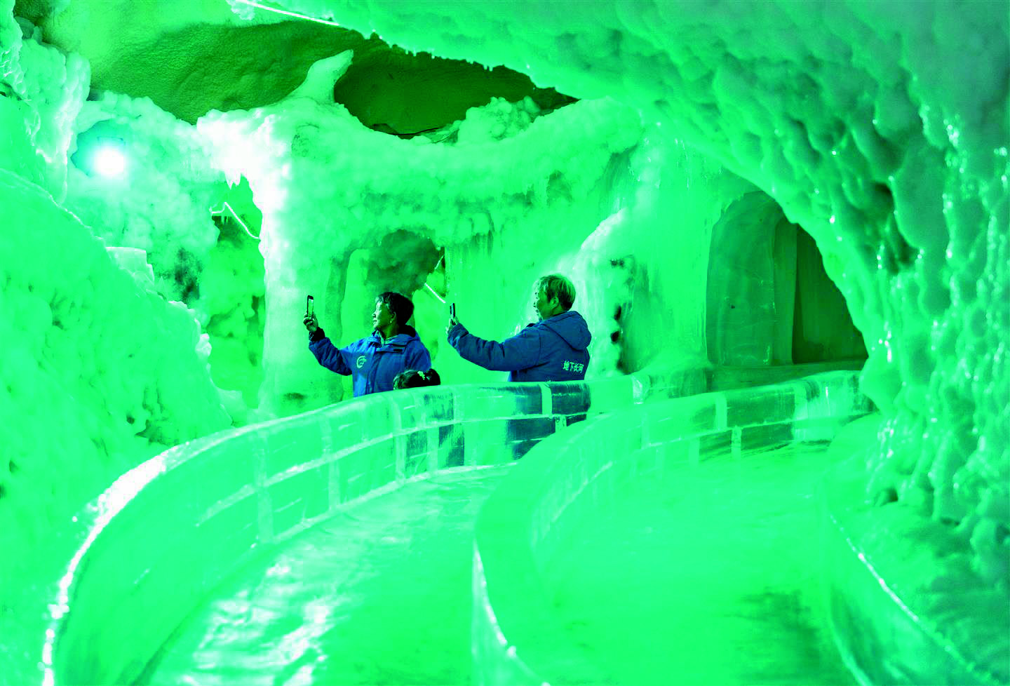 近期,暑期旅游市场吹起“清凉风”。昨日,在兰溪梦幻冰雪大世界、越龙山大峡谷等景区,别具一格的纳凉场景成为市民、游客消暑的热门选择。 本报记者 傅俊 文/摄