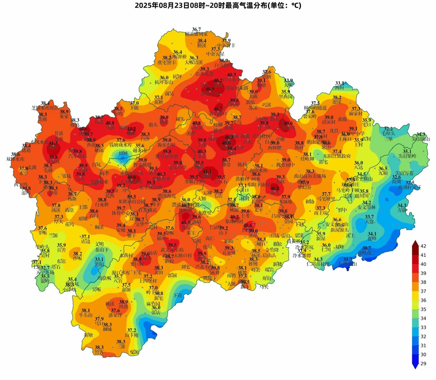 今年的高温不按套路出牌,8月1日至24日,金华国家气象站监测的日最高气温已经连续24天在高温线以上,其中,8月24日出现了今年的极端最高气温(39.6℃)。同样拿到高温“全勤”的还有兰溪、东阳和武义。