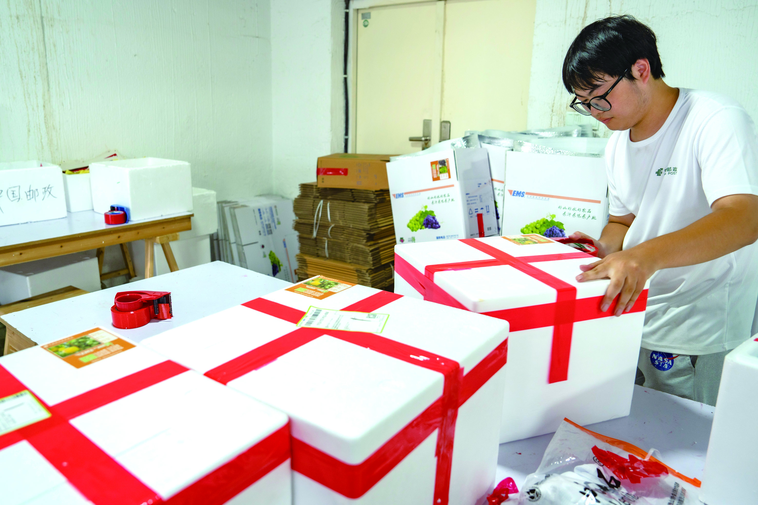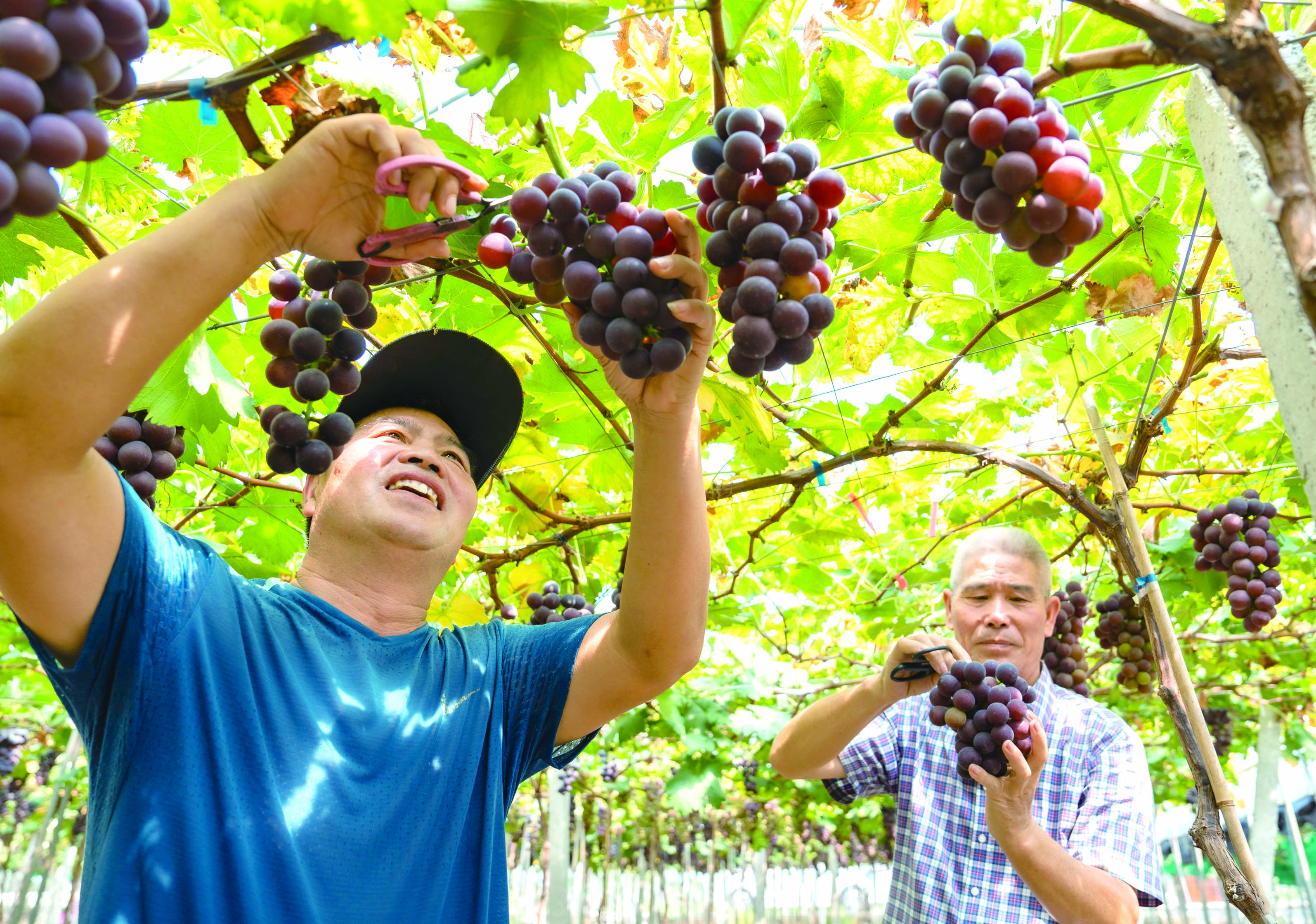 眼下,我市各地迎来葡萄丰收季。一串串色泽诱人的葡萄挂满枝头,果农们忙着采摘分拣、打包发货,一派繁忙景象。