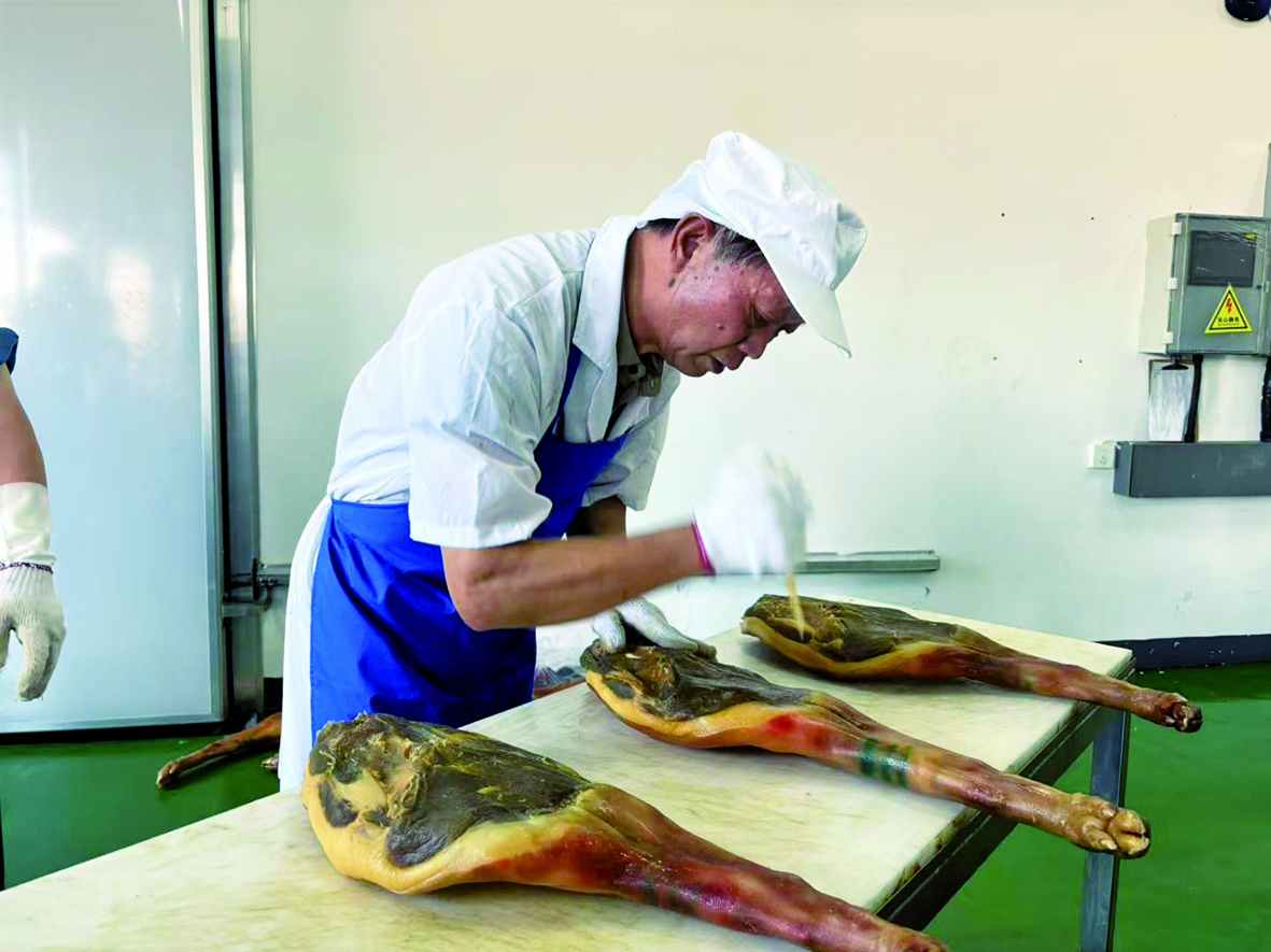 查看外形,用签子分别插入火腿的上、中、下部,放在鼻下闻香味判断是否合格……昨天下午,在浙江金华火腿有限公司的车间内,1500只火腿正在进行2025年“地理标志产品金华火腿”质量验收。