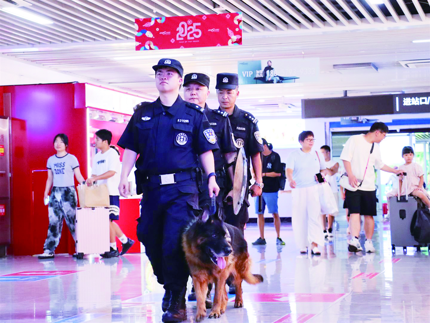 为有效应对暑运返程期间客流高峰,金华市公安局婺城分局巡特警大队全面强化金华高铁站区治安防控,科学部署警力,严格落实快速反应机制,在进出站口、候车区、站前广场等重点区域增派执勤力量,采取定点值守与机动巡逻相结合的方式,加强重点时段和区域的管控力度,确保应急处突力量就近响应、迅速出动,切实维护站区治安秩序平稳有序,保障旅客安全出行。 陈荃芷 摄