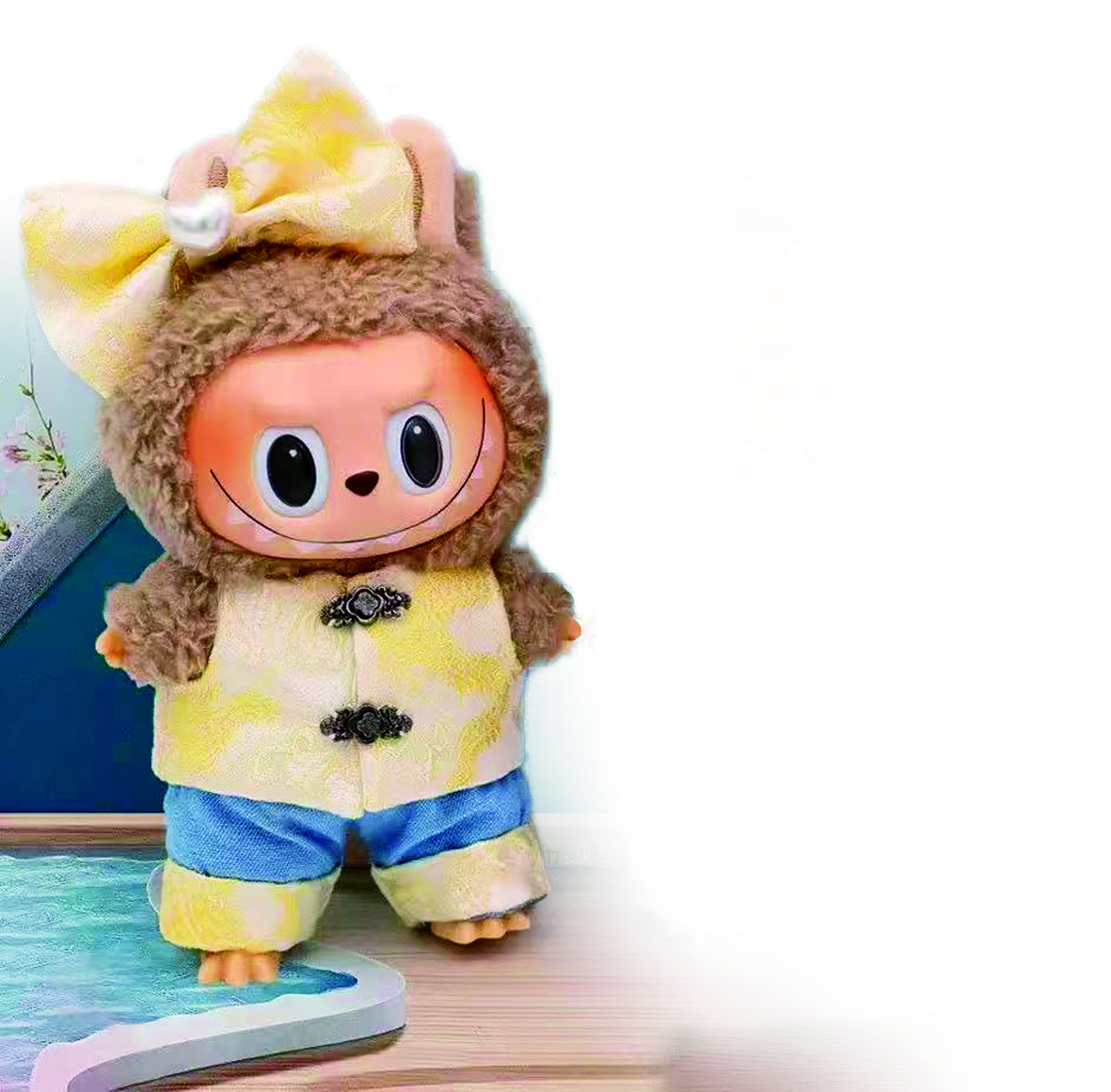 “为了让娃衣传递东方美学,我们精心挑选了面料,还推出结合如意扣、珍珠点缀、缂丝工艺等细节的微缩服饰。尽管只有5厘米大小,一件娃衣从面料选择到版型设计都需精雕细琢。加之我本身很喜欢传统文化,平时也穿旗袍,所以国风系列娃衣的灵感才能够源源不断。”谷会杰说。