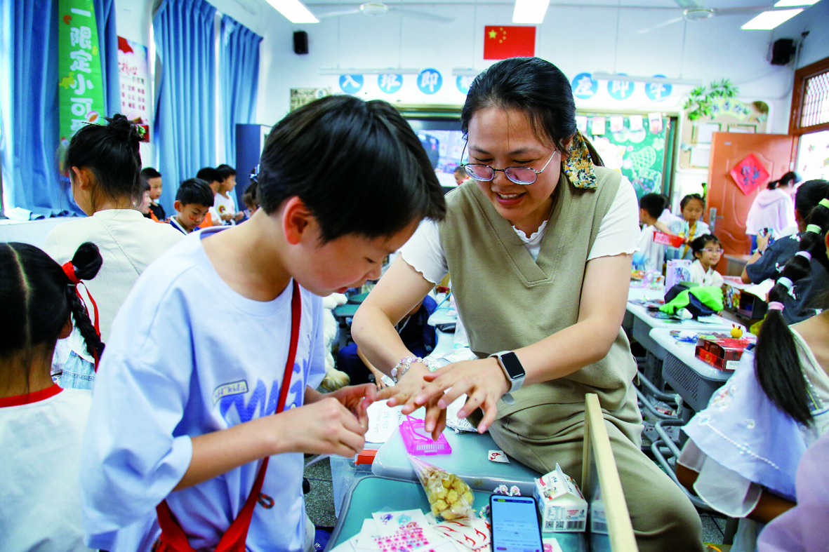作为一名90后教师,新学期伊始,金凌萍谈及自己学生时代的开学仪式感。“最开心的就是开学前夕布置教室、搬书的时候了,虽然时光荏苒,每年开学季还是能回想起自己的学生时代。”她笑着说,“领到课本后第一件事就是包书皮,我们以前是用旧报纸包书皮的。”