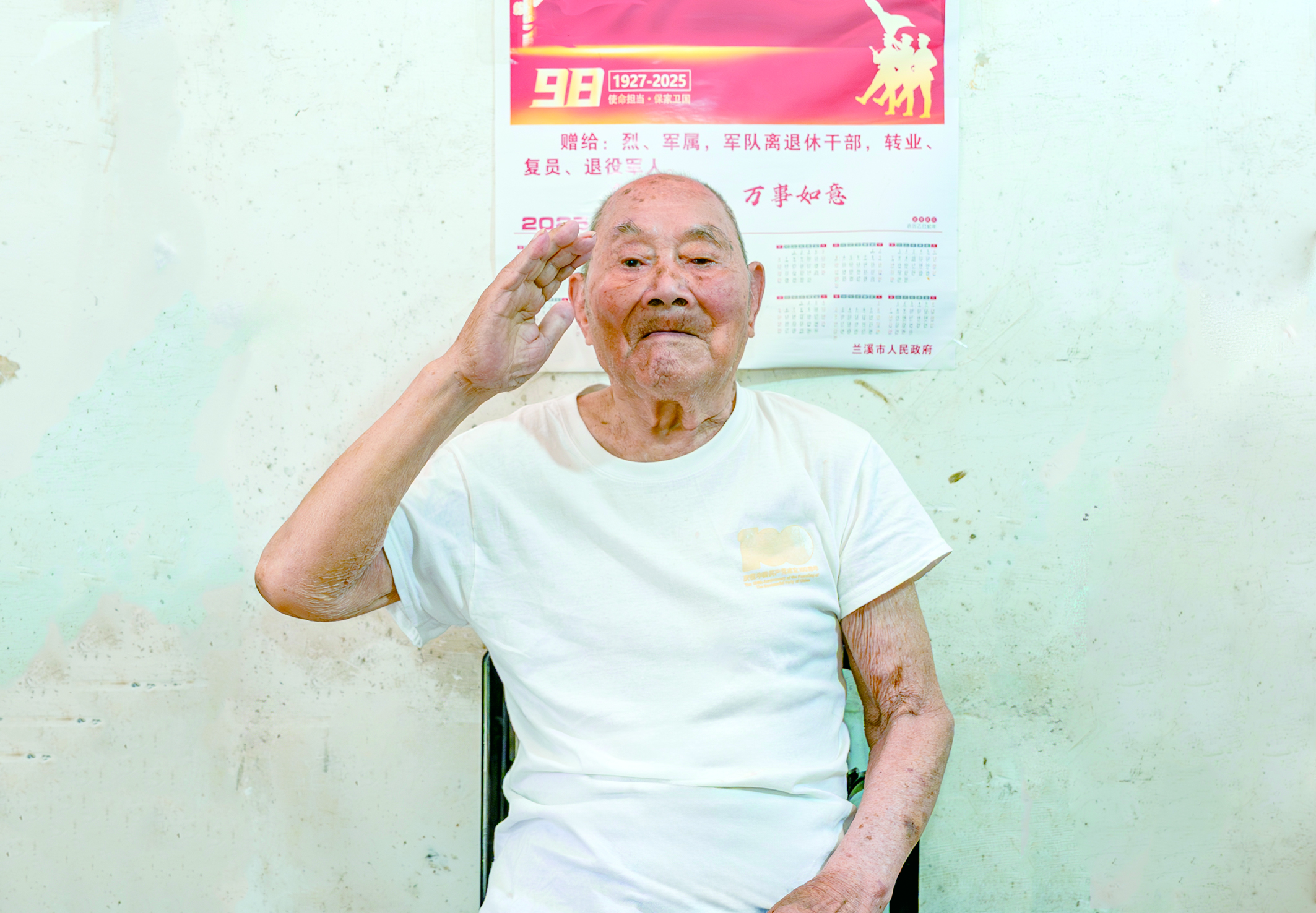 金 尧 在兰溪市横溪镇见到104岁的抗战老兵金尧时,记者的思绪被带回10年前:也是这样一个夏天,也是这样一间透气通风的老屋,还是这个慈眉善目的老人,用最生动的讲述打开历史的闸门。 一切都格外亲切。金尧深藏功与名,他的抗战故事是当时大多农民从军抗敌的缩影。金尧说,自己之所以义无反顾地加入共产党队伍,是因为在这里,干部和士兵是同等的。在新四军金萧支队第八大队的日子,他随军在浦江黄宅、金东区潘村伏击日军,这也是此生难忘的峥嵘。