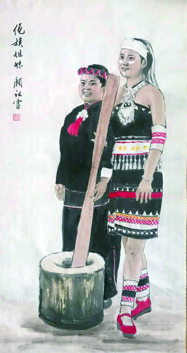 在旅游中看到少数民族同胞,颜祖富会先留下影像资料,了解他们的习俗文化,等回来后,再查阅大量资料,最后将确定的人物画到纸上,并在边上写上自己当时的所见所闻。