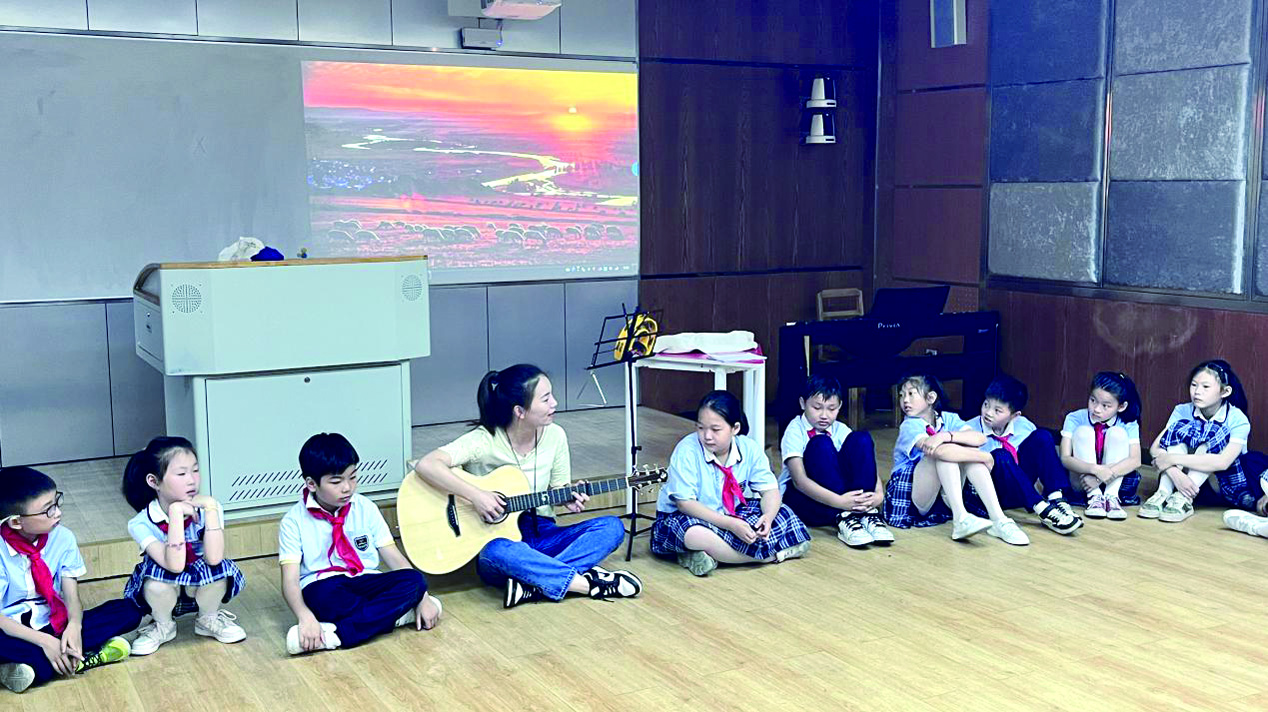 一次班级音乐会,让项亚丽读懂了教育的真谛。“平时活泼好动甚至有些吵闹的孩子,站上舞台就像变了个人,表现力、感染力拉满。那些安静内向、不显眼的孩子,竟藏着‘绝技’,弹琴、唱歌、朗诵样样出色。”这次经历让她坚定了一个想法:“每个孩子都是待发光的星星,教育不是灌输知识,而是发现闪光点、点燃成长热情。”从此,她的音乐课堂成了“星光舞台”,没有主配角之分,每个孩子都能找到适合自己的展示方式——无论是担任乐团乐手,还是参与合唱表演,或是负责舞台小策划,一个个小小的身影在音乐里找到自信。