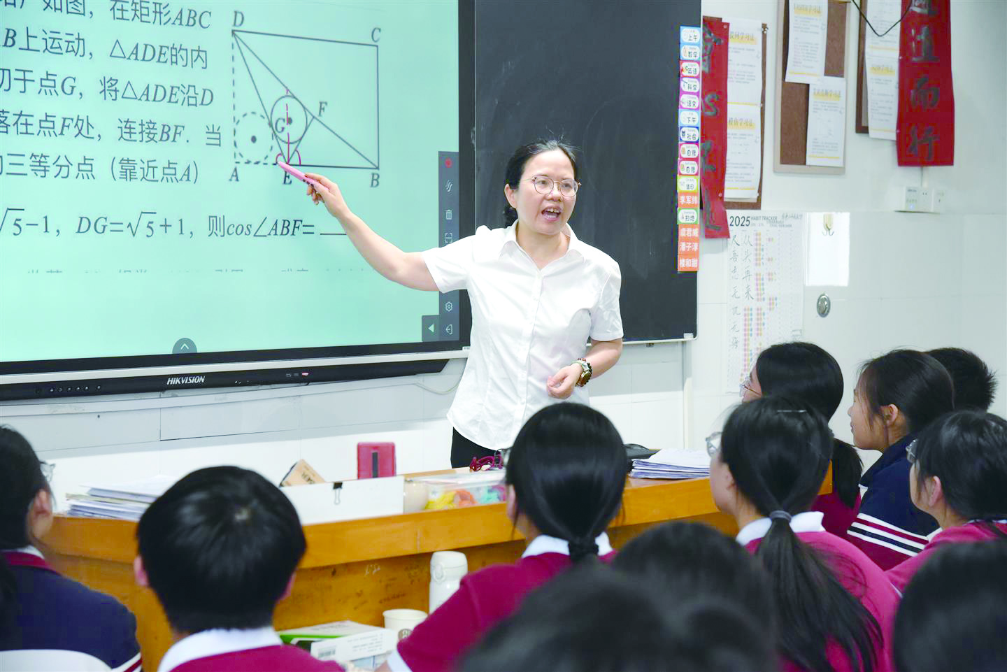 “芳芳”,这声亲切的呼唤,是学生对吴华芳满满的爱意与敬意。课堂上,她风趣幽默、激情四溢,用生动有趣的方式讲解数学知识,让枯燥的课堂变得充满活力。她会用生活中的例子来解释复杂的数学概念,让学生们觉得数学原来这么贴近生活、这么有趣。学生们总是争着抢着坐在前排,眼睛紧紧盯着黑板,渴望在数学的世界里与她共舞。