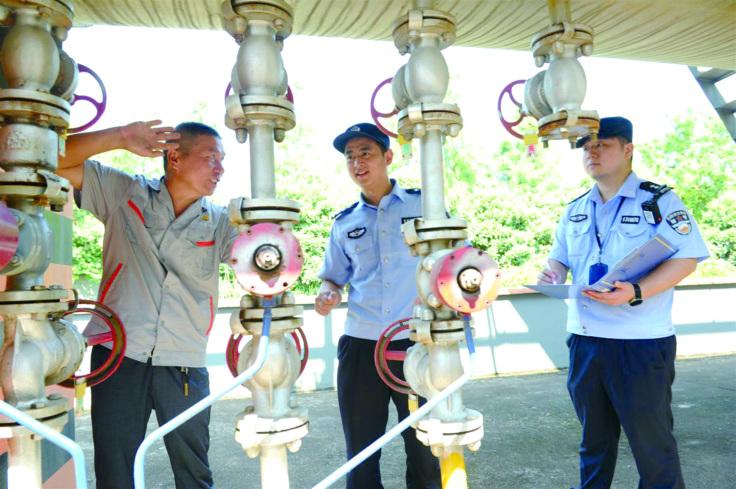 近日,东阳市公安局白云派出所民警辅警深入辖区液化气公司开展安全生产巡检,对公司管理人员及员工进行安全宣传教育,进一步拧紧液化气“安全阀”。