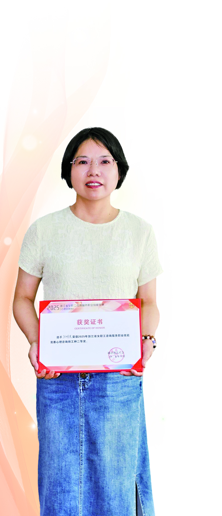 今年6月,在“浙江省女职工婚姻服务职业技能竞赛”中,张瑞英作为金华市代表队成员,以优异成绩荣获二等奖,并被认定为“浙江金蓝领”。
