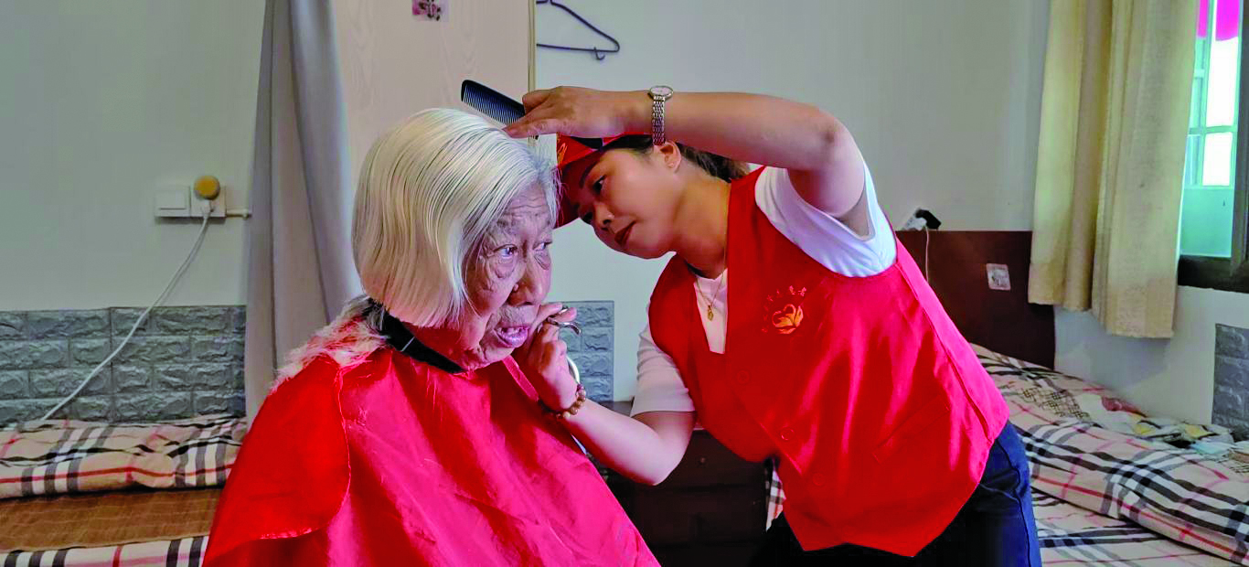 这份纯粹的善意,让吴锡妃从旁观者变成了参与者。如今,她早已把志愿服务当成生活的一部分,每月中旬的两天,她会按时参与驻村定点服务,为村里的老人免费理发;只要队里发布活动通知,无论是上门为瘫痪老人剪发,还是到社工站为居民服务,她总是第一时间在公益群里接龙报名。“队里的公益群很活跃,400多人的群里,200多个伙伴经常参加活动,大家都是上班族,却总能挤出时间,特别积极。”