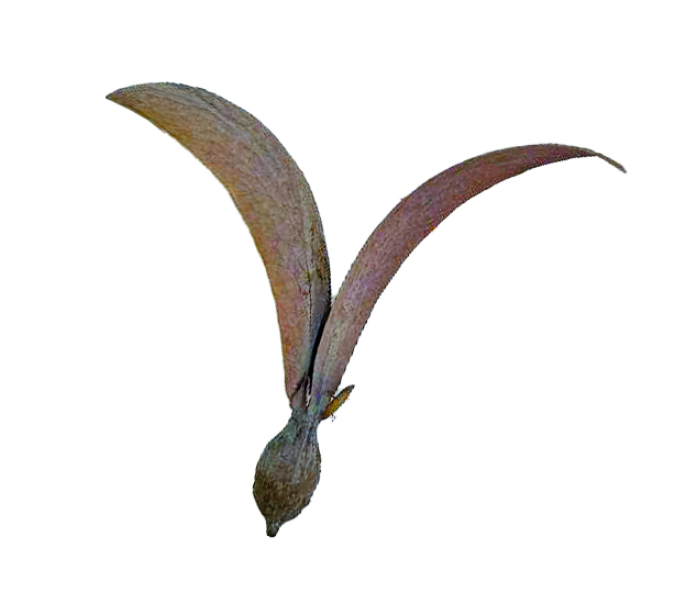 在这些果实种子里,还有一些长相奇特的,比如长得像小南瓜的红茄、天生带有一对翅膀的龙脑香果实种子,还有形态像小船的酒瓶树果实种子等。