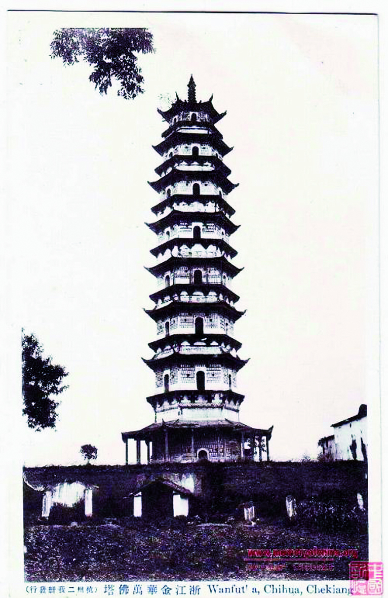 万佛塔原塔始建于北宋嘉祐七年(1062)至治平元年(1064)之间,毁于抗战时期。原塔塔身外壁上半部的每块砖上,都雕有一排排结跏趺坐的佛像,数以万计。