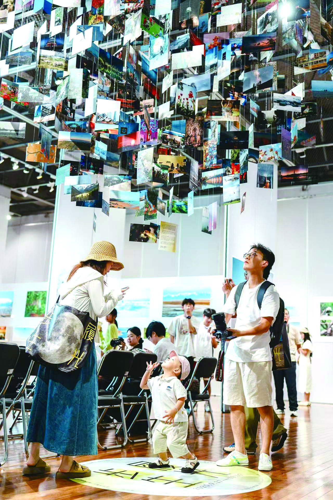 @米菲突:在一场摄影艺术展上,500张摄影作品从天花板悬挂而下。一个小朋友站在其下,伸手想要触及,有趣极了。 楼冀阳 摄