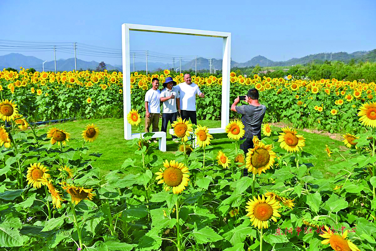 近日,东阳市南马镇花园村天香湾景区的向日葵绚烂绽放,吸引不少市民游客前来赏花拍照,乐享美景。 通讯员 包康轩 王江红 文/摄
