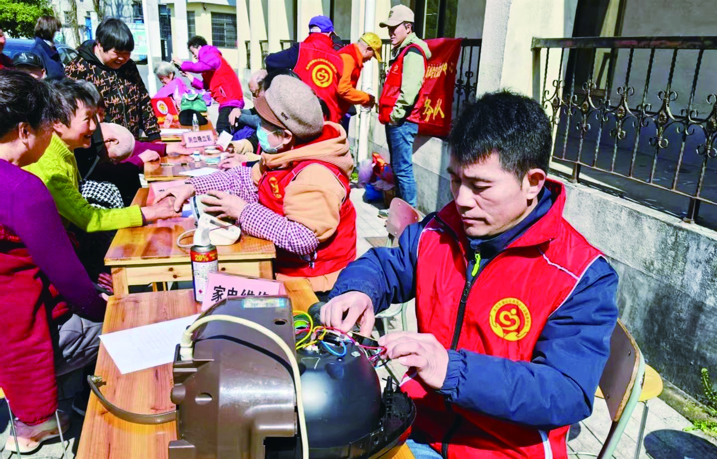 “师傅,帮我看看这电茶壶,插上电没反应。”不少市民抱着出故障的小家电凑了过来。凭借30年的维修经验,很多小问题宋拥辉只需看一看外观、听一听运行声音,就能判断出症结所在。“电茶壶是电源线接触不良,重新接一下就好。电饭煲是温控器失灵,换个配件就行。”他一边快速维修,一边耐心向市民解释故障原因。对于冰箱、洗衣机等大件电器,他会仔细记录市民的联系方式和地址,后续上门检查维修。