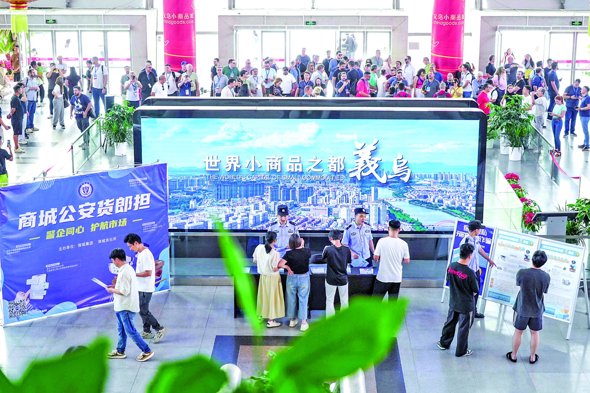 10月12日,义乌市公安局商城派出所深入国际商贸城开展“公安货郎担”活动。“鸡毛换糖”是义乌传统,进入新时代,民警辅警化身“货郎”向经营户、客商推介反诈、禁毒等“平安产品”,提高他们的安全防范意识。 郑圻冬 摄