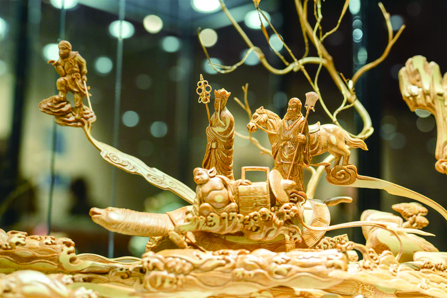 在这3个国家级和省级的展览中不乏金华匠人的作品,包括木雕、根雕、锡雕、竹编等不同品类。其中,竹雕作品《竹艺西游记》是第十六届中国民间文艺山花奖的获奖作品。