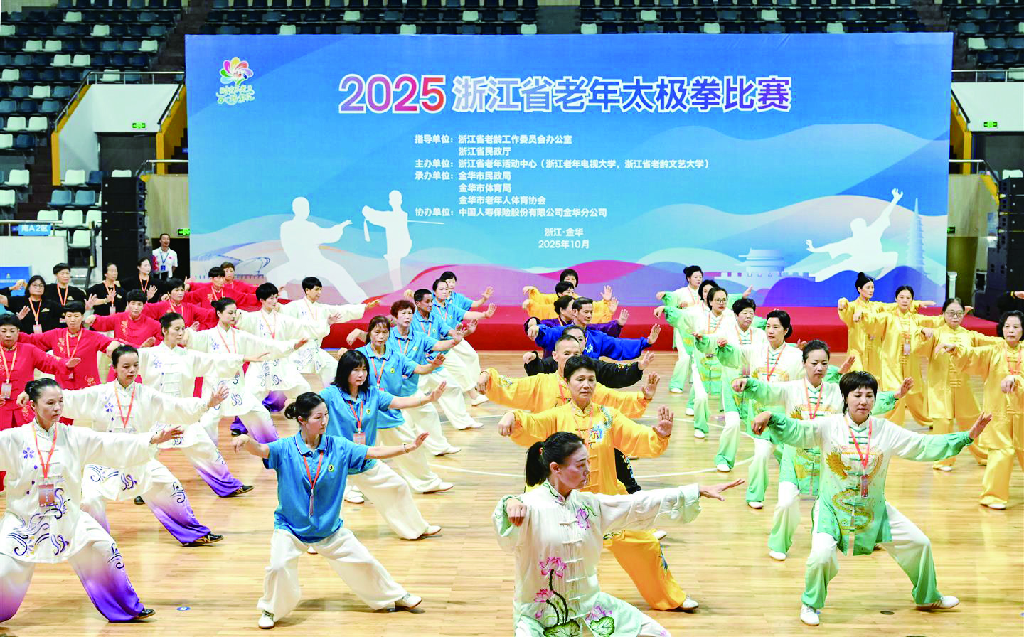 近日,浙江省老年太极拳比赛在金华市体育馆举行,本次比赛以“时光不老·一路繁花”为主题,来自全省的12支代表队、180多名太极拳爱好者同台竞技。 本次比赛由浙江省老年活动中心、金华市民政局以及市体育局、市老年人体育协会联合举办。近年来,我市高度重视老龄事业,不断完善社会保障体系、养老服务体系、健康支撑体系,大力推进老年友好型社会建设,特别是老年体育活动蓬勃开展,全市146个乡镇(街道)、约2800个行政村建有老年体协组织,有76.3万老年人参加各种体育健身活动。 本报记者 李建林 文/摄