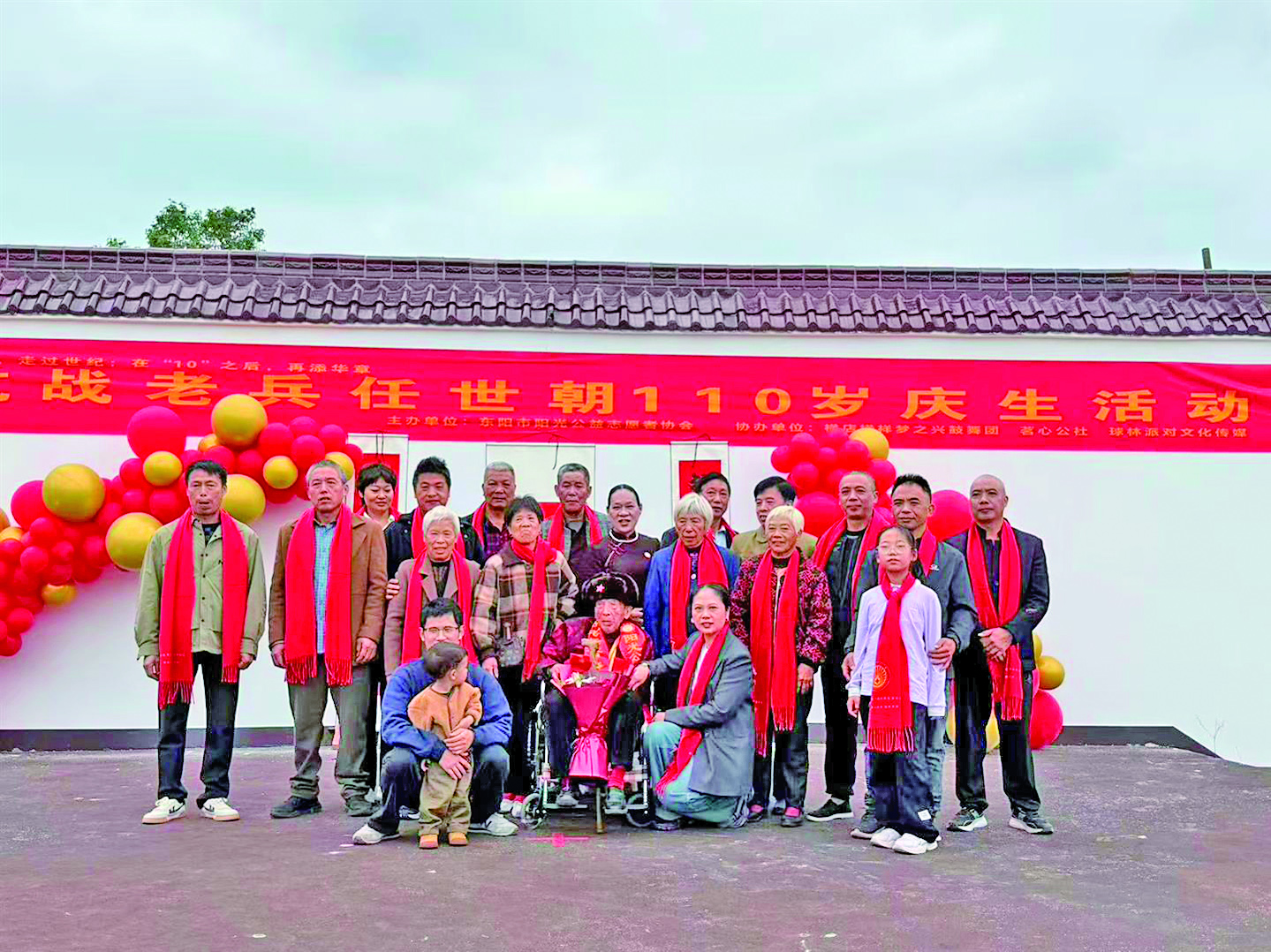 10月25日,浙江省最年长抗战老兵任世朝在东阳市佐村镇宅口村度过了110岁生日,老人亲属和200余名各界爱心人士给老寿星送上生日祝福。