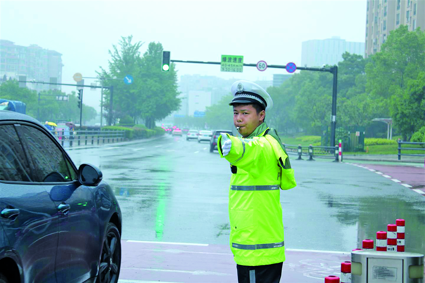 清晨的十字路口,寒风扑面。永康市公安局交警大队城区二中队民警袁景煜正以标准手势引导着车流,并不时叮嘱路过的市民:“大爷,骑电动车一定要戴好头盔,安全最重要!”
