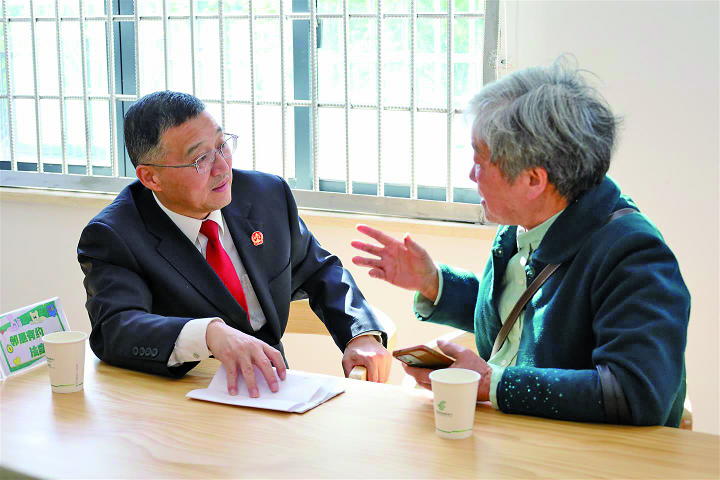 10月29日,婺城区人民法院联合祝丰亭社区在邮储银行人民西路支行开展“共享法庭”活动,法官耐心倾听老人们在消费、养老等方面的法律诉求,并提供专业细致的法律解答与建议。 本报记者 傅俊 文/摄