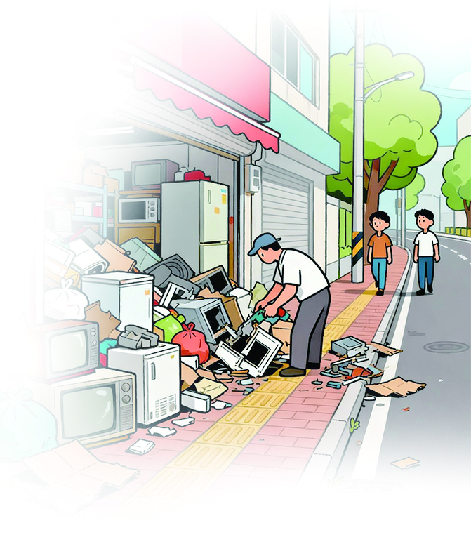 潘先生经常看到店主在路边拆卸废弃物,废旧家电、纸壳随意堆放,这一段人行道变成了“垃圾堆”。他说,有时风一吹,部分纸屑杂物四处乱飞,现场一片狼藉。“废旧物品大多易燃,有消防安全隐患,还堵塞了道路,影响他人出行。”他希望相关部门核实处理,不允许经营者占道堆放废旧物品。