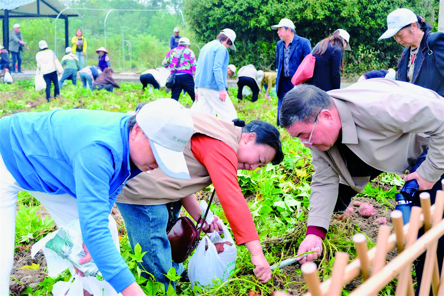 王彩英和老伴分别挖了一袋番薯。她乐呵呵地说:“10年前,我们还自己种菜,吃不完就拿去卖。后来菜地没有了,我们都很久没有干农活了。像今天这样活动一下筋骨,感觉浑身舒畅。”退休11年的吴雪娟也拿着小锄头挖呀挖,劲头十足。这些年,她经常出门旅游,放松身心,丰富退休生活。“我喜欢农村的风景,今天在这边看到了金黄的稻田,还亲手挖了番薯,拔了甘蔗,感觉不虚此行。”