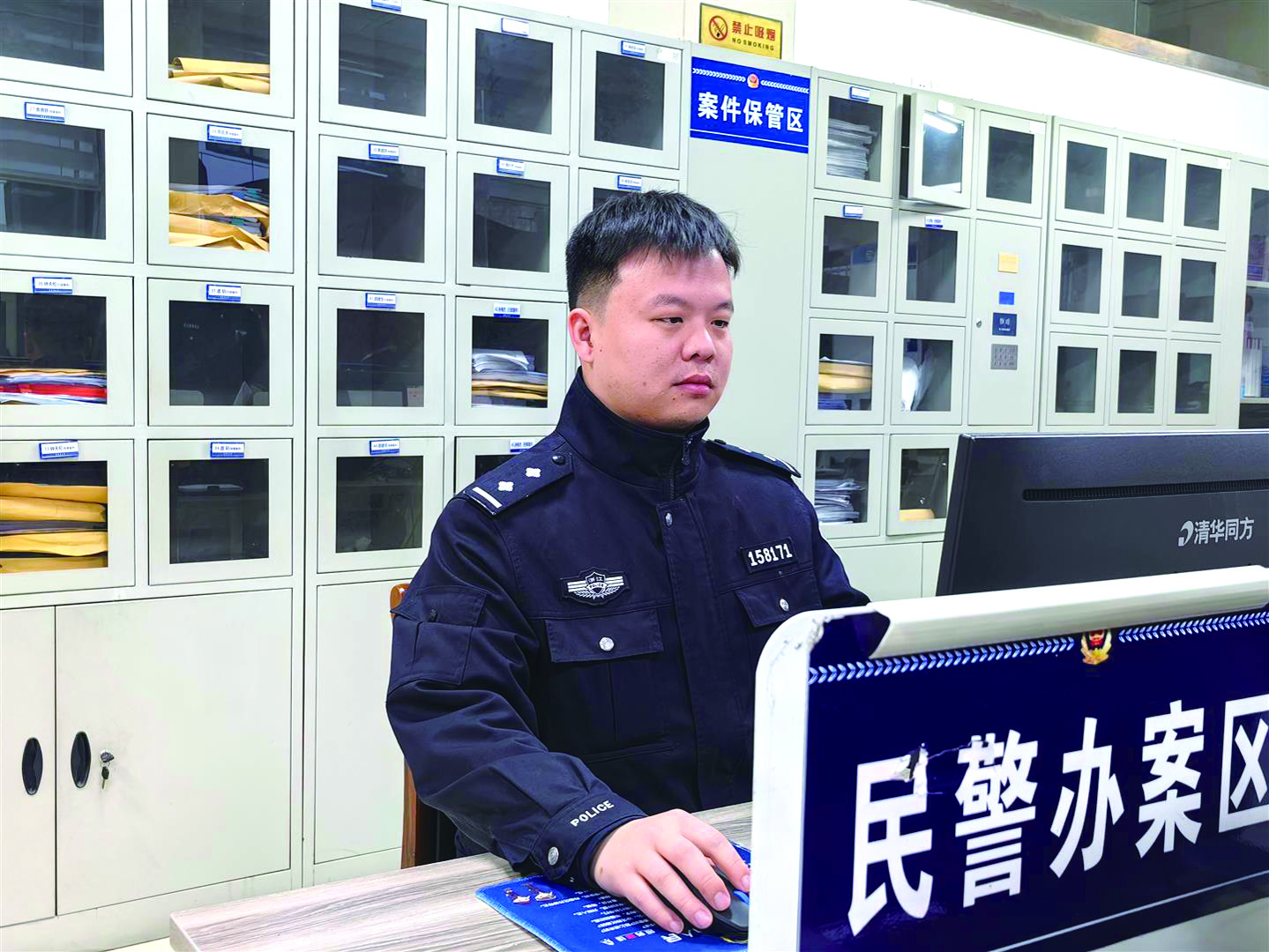 他是叶洛铭,1994年出生,浦江县公安局浦阳派出所民警。2017年从警至今,他已参与侦办案件270余起、接处警6600余次、帮助追赃挽损500余万元、救助群众80余人,并荣立个人三等功1次、记个人嘉奖3次,连续7年获评优秀公务员等。