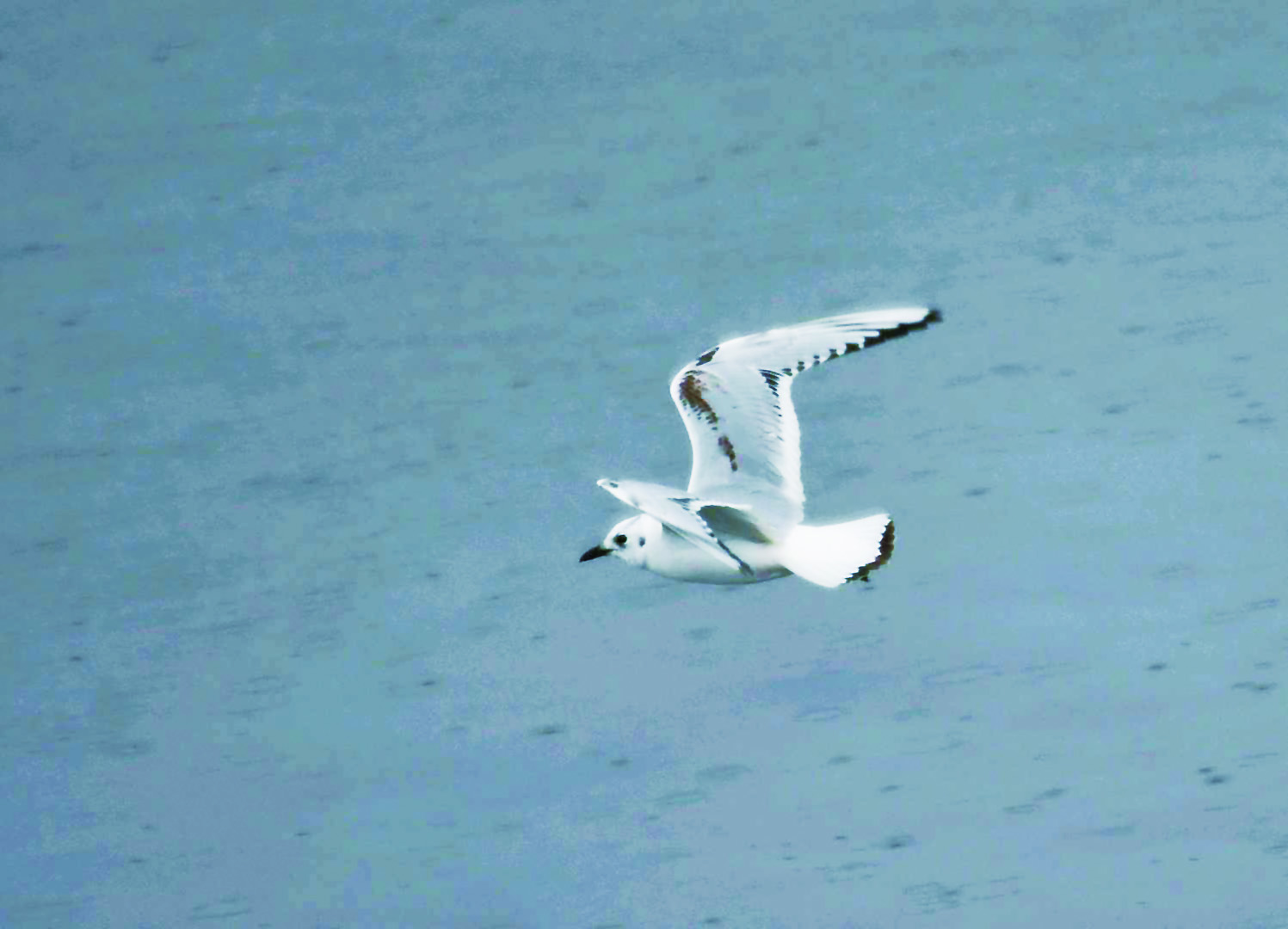 起初,他的镜头里都是“老熟人”:青脚鹬在浅滩上啄食,苍鹭展开翅膀慢悠悠掠过水面,“当时还心想,今天雨不大,鸟况果然不错”。就在他站在桥上调整相机参数时,一阵翅膀扑棱的声音从头顶传来——一只体形中等、羽毛灰白的鸟飞了过来。