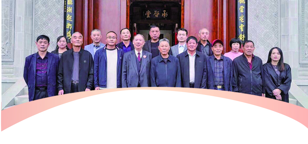何马招(前排左四)与乡亲们在新修缮的祠堂前合影(图片由受访者提供)