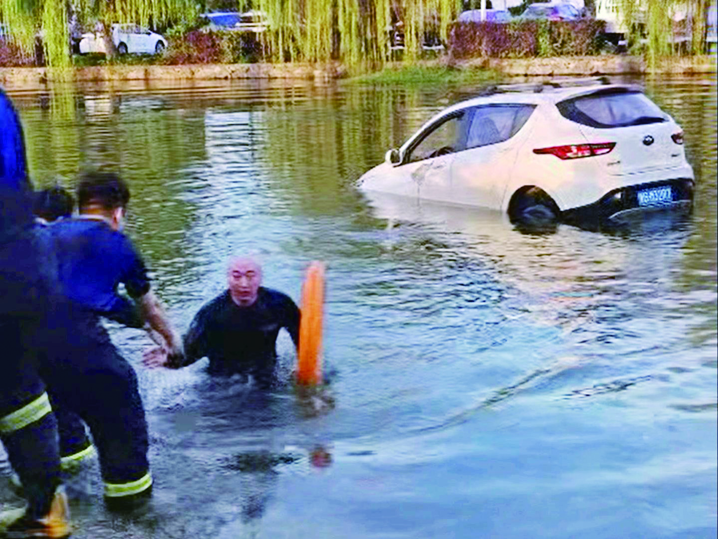 11月19日下午4时30分许,李先生驾车来到租住地附近的池塘边,正准备清洗车辆。不料在停车过程中操作失误,误将油门当作刹车踩下,导致车辆失控,瞬间冲入池塘。水流顷刻间大量涌入车厢内,车身快速下沉,而不谙水性的李先生惊慌失措,处境十分危急。