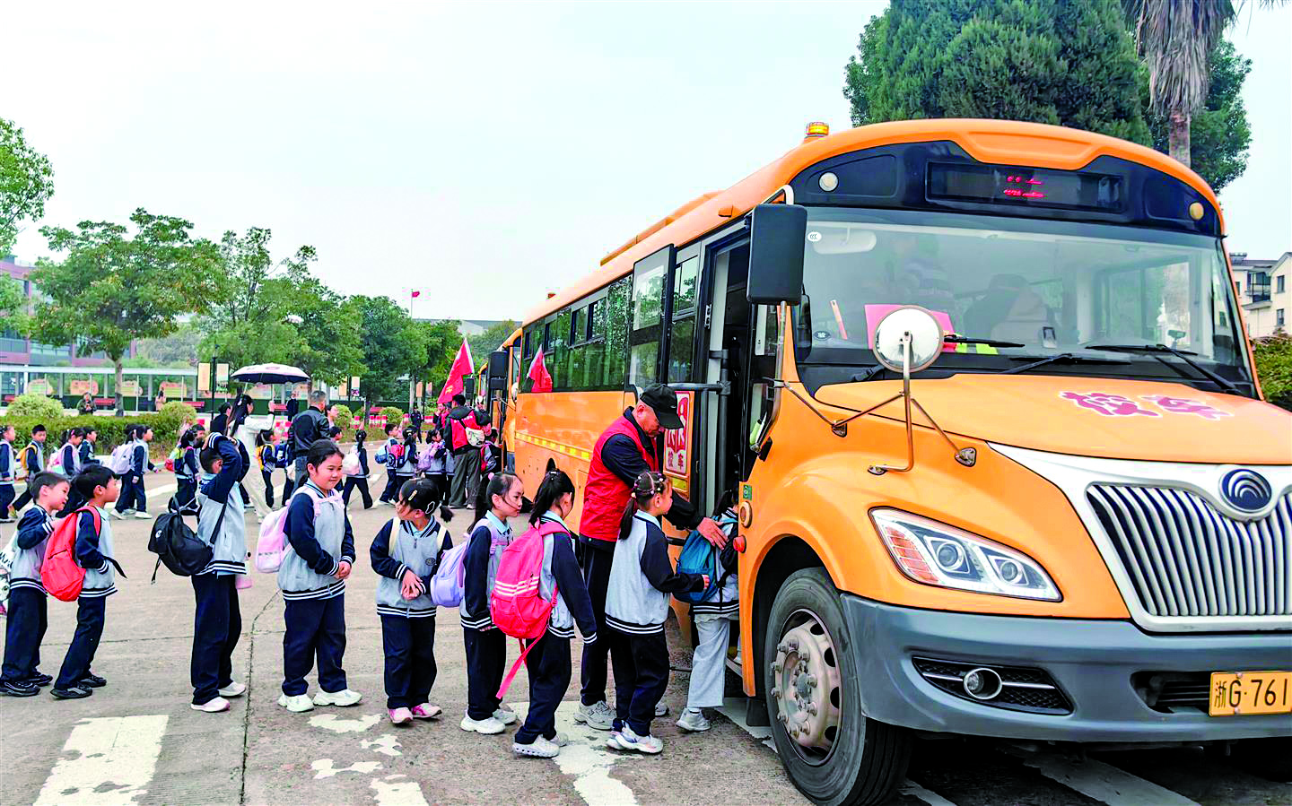 连日来,市轨交控股公交集团营运一公司的“大鼻子”校车保障学生的研学出行。据了解,2018年3月3日,“大鼻子”校车在金华开发区秋实学校投入使用,标志着该公司首条专业校车线路开通,7年多来,累计安全行驶189万公里。 本报记者 李建林 文/摄