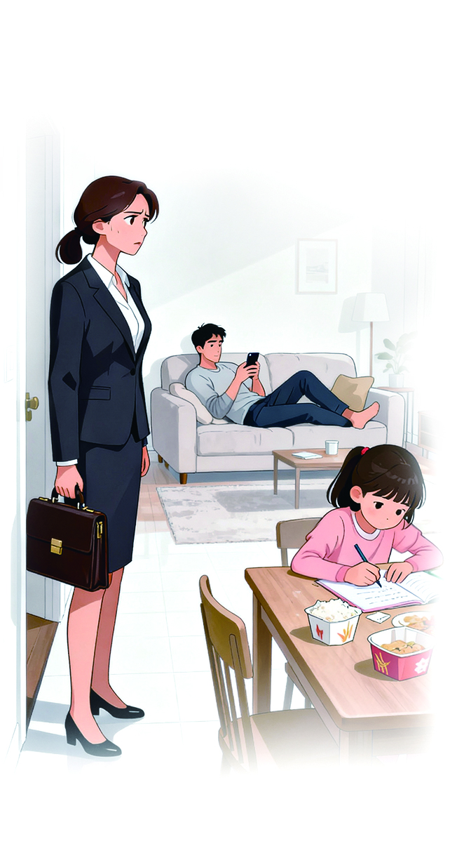 我每天在外奔波忙碌,丈夫大多数时间都宅在家里,如果能多做家务,多陪陪孩子,那也不错。想象和现实总是有差距的。我早出晚归,可以负责简单的早餐,晚餐就交给丈夫准备。他经常懒得做,带着女儿吃外卖。我质问他,他还说是女儿想吃外卖。我出门前把脏衣服扔进洗衣机,叮嘱他到时把洗好的衣服晾起来。结果等我下班回家,衣服还在洗衣机里。女儿做作业需要辅导,他很没耐心,不是自顾自躺在沙发上玩手机,就是冲着女儿发脾气。我有时忙完工作,还要处理父女之间的矛盾,感觉更累了。