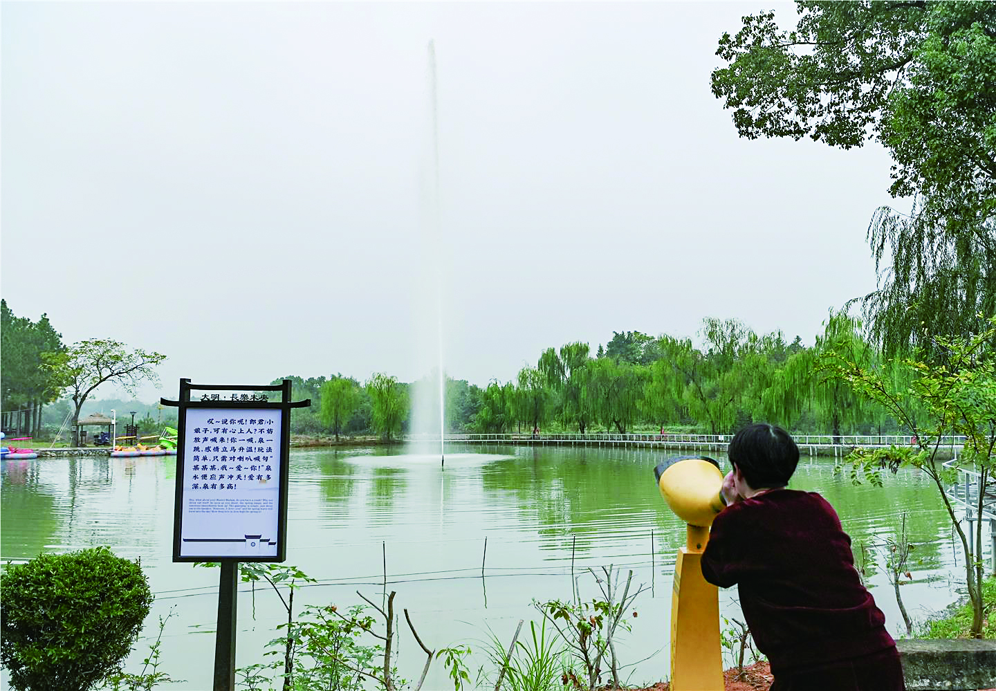 近日,兰溪市诸葛镇长乐村新增一项旅游项目——喊泉,吸引众多游客前来体验。据了解,喊泉是一种娱乐项目,靠音频信号转为电频信号,再控制水泵压力。游客通过发声高低、时间长短来影响喷泉高度和持续时间。在喊的过程中,游客能够达到释放压力的效果。 本报记者 李建林 文/摄