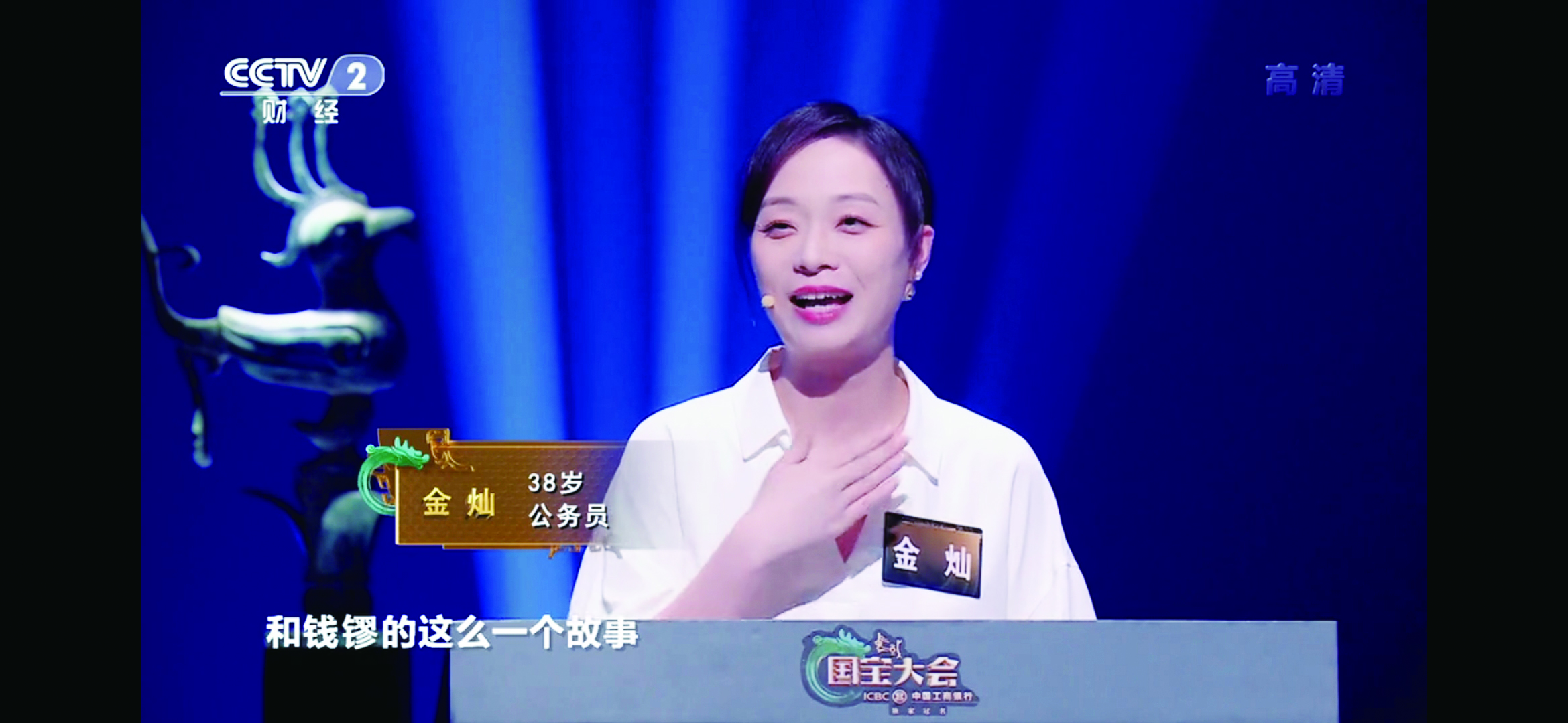 第四赛段“金木水火土”主题竞答中,出题组的创意令人称奇:以“金榜题名”关联“金”考查状元卷,以金漆工艺关联“金”设问药柜抽屉数。“答题既要快速选答案,还要阐述对文物的理解,对脑力和心理素质都是极大考验。”金灿笑着说。最终,她一路过关闯入冠亚军对决,三度答穿题库斩获亚军。节目中,她频频讲述义乌“鸡毛换糖”的精神,让这座商贸城市的文化底蕴通过国宝舞台走向全国。