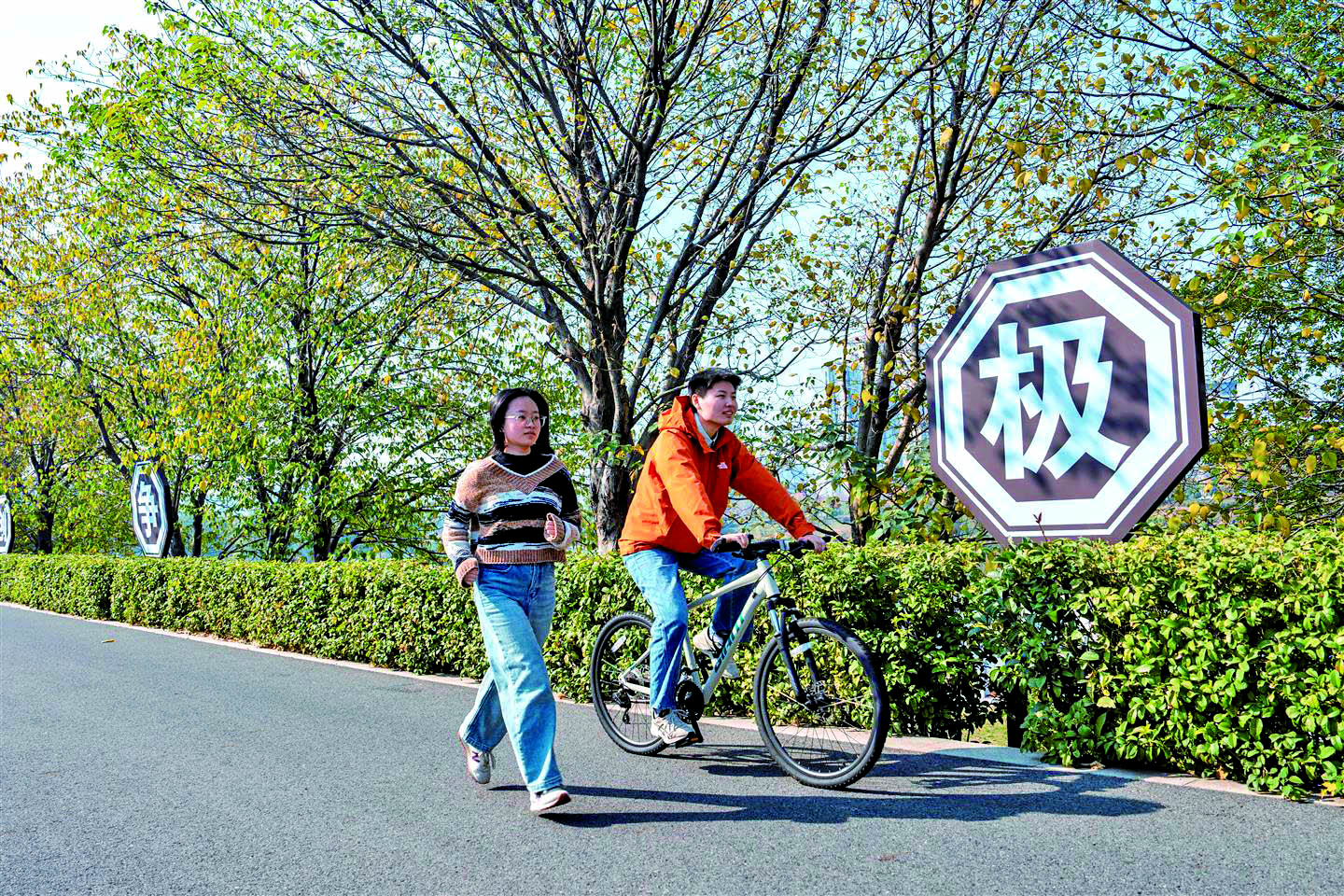 随着城市建设推进,我市行政村健身设施覆盖率、城市社区“15分钟健身圈”覆盖率以及公共体育设施开放率均达到100%。昨天上午,不少市民在金东区东湄社区附近的江边绿道跑步、骑行。本报记者 傅俊 文/摄