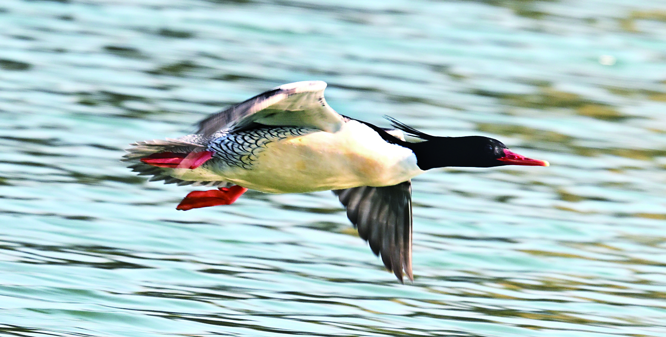 中华秋沙鸭在我国的长江流域及以南地区越冬,迁徙距离单程超过2000公里,特别喜欢在缓流的河湾与奔腾的急流相互交替处停留。中华秋沙鸭还被视为检验水质的敏感指示种。它们生活的地方,都是生态环境优良的水域。因中华秋沙鸭捕食时通常依靠敏锐的视觉,所以它们栖息的河流必须非常清澈。