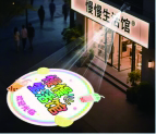 上图是投射在地上的广告图案,其原理是凸透镜成像。那么,如何让广告图案投影效果又大又清晰呢?小科进行了如下探究: