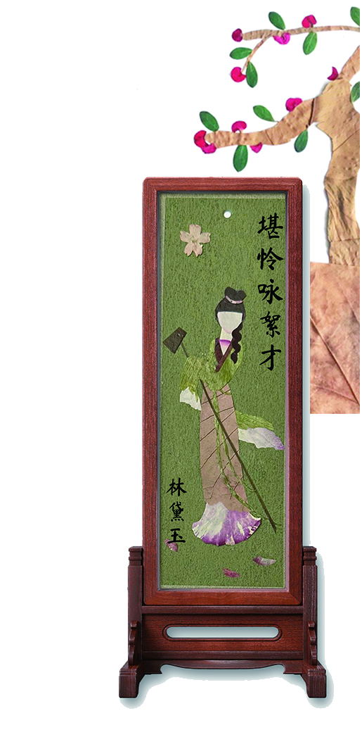 2018年5月,韦朝仙的树叶贴画登上美国西雅图中国艺术节的舞台,红楼系列作品在异国他乡绽放光彩。观众们驻足赞叹,专家提出了不少建议。这些反馈成为她精进技艺的动力,此后,她不断吐故纳新,优化创作细节,力求让作品更具深度与张力。