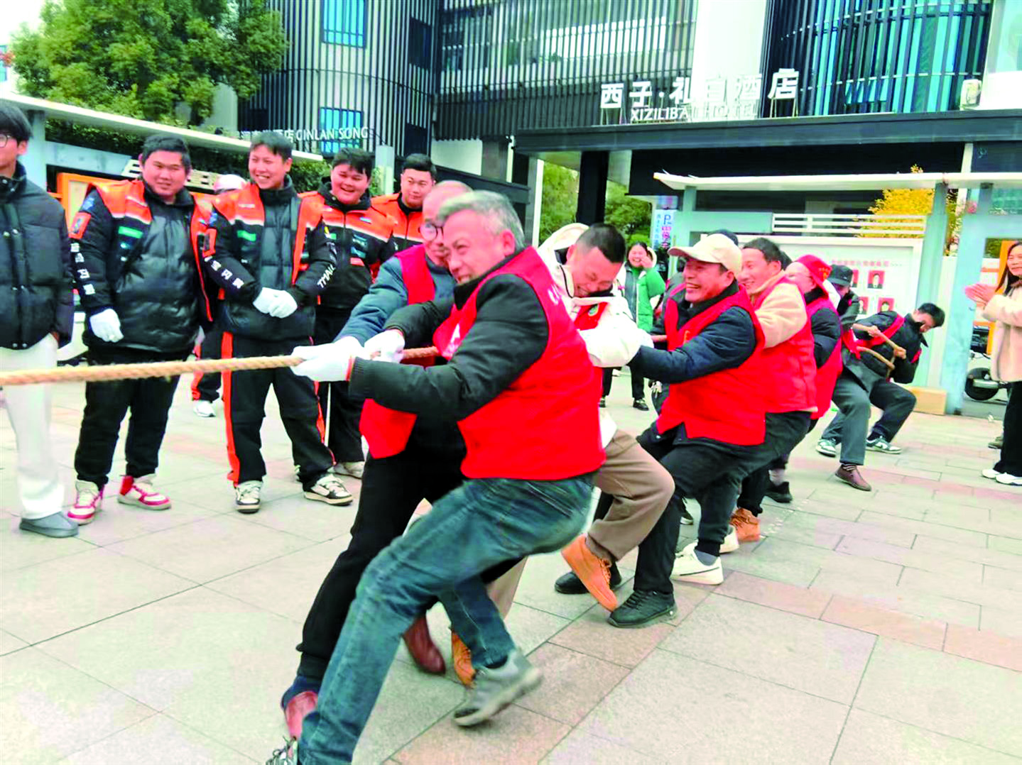 比赛现场,来自不同外卖平台的4支队伍、40余名外卖小哥精神抖擞、士气高昂。随着裁判一声哨响,队员们紧握长绳、重心后移,憋足劲向后发力。场边,社区居民、商户代表组成的啦啦队挥舞着小旗帜,加油声、口号声一浪高过一浪。经过多轮激烈角逐,最终淘宝闪购骑手队获冠军,美团骑手队获亚军,京东骑手队获季军,社区知新老哥队获优胜奖,社区工作人员为获奖队伍颁发了荣誉证书和纪念品。