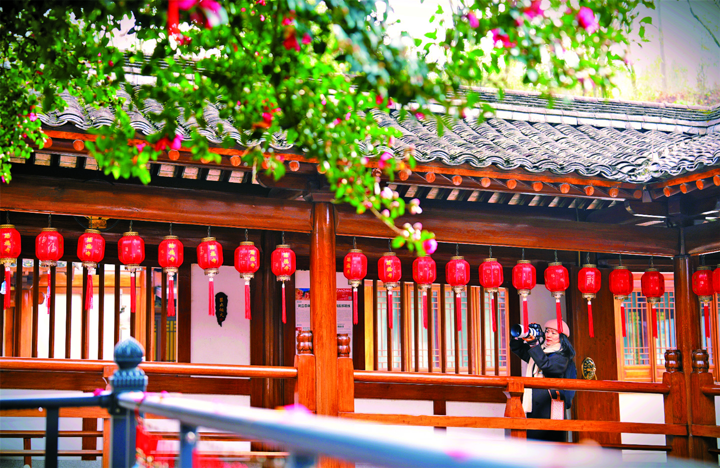 近日,武义县延福寺一株茶梅在寒风中傲然绽放,满树红花与绿叶相映成趣,形成一道亮丽的风景线,吸引众多市民及周边游客前往观赏、拍照。 本报记者 唐佳华 文/摄